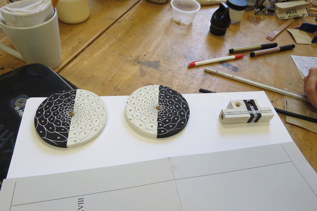 Concentrated time in the studio is resulting in a flurry of projects — snippets of ideas are beginning to be translated into objects, and even some woodturning has happened ….