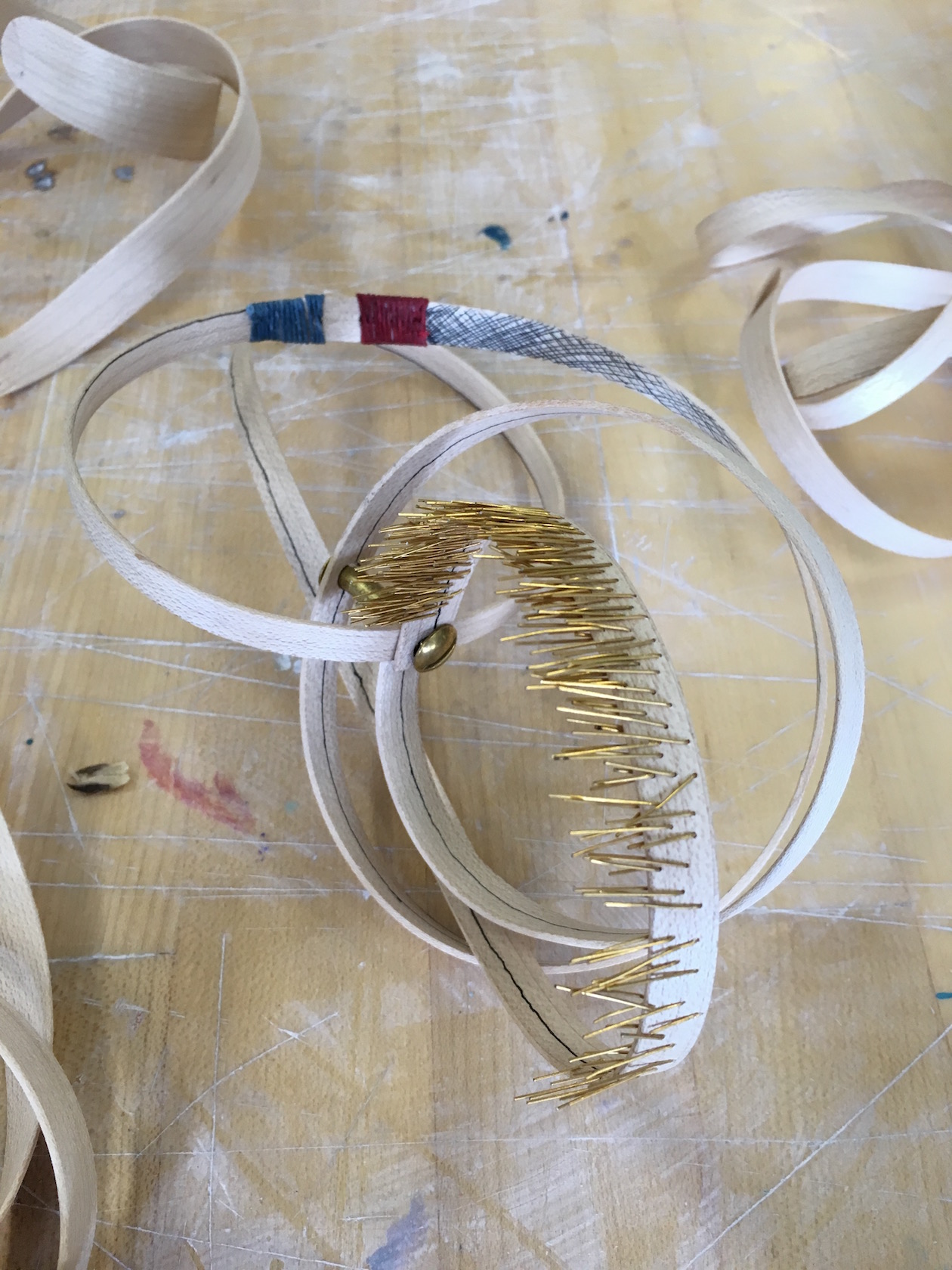 Michaela is exploring the possibilities of using formed strips of wood as the basis for sculpture and body adornment.