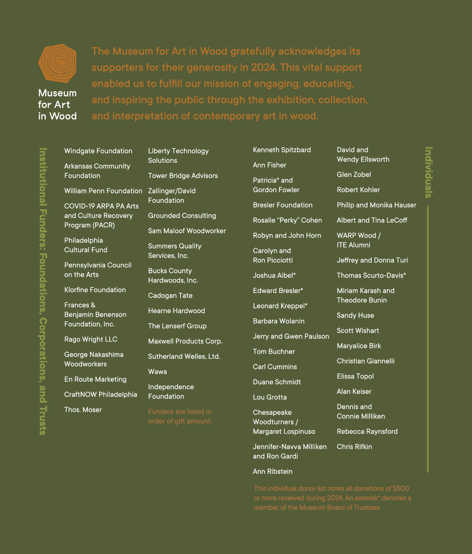 Institutional Funders and Indvidual Donors for 2024